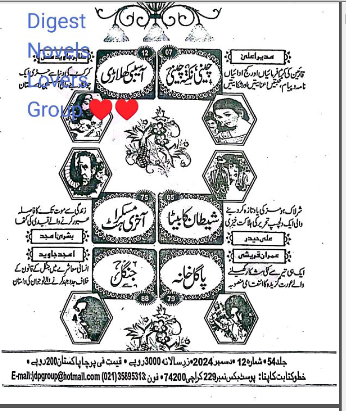 Jasoosi Digest December 2024 Complete PDF This is social romantic Urdu novel based on fiction and some of them are true stories or inspired by the writer . The story revolves around the love story or social family issues . , Complete Novel PDF , Long stories PDF , Episodes Novels PDF are part of this .